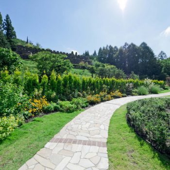 英国スコットランドから移築・復元されたお城や10万米の敷地内には石段や花木に彩られた庭園、中世の街並みを再現した石造り教会やショップ、レストランと・・・もう外国に来たのでは!?と錯覚しそうですよね。